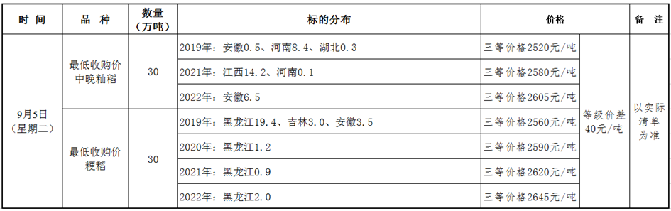 9月5日最低收购价稻谷竞价销售交易公告